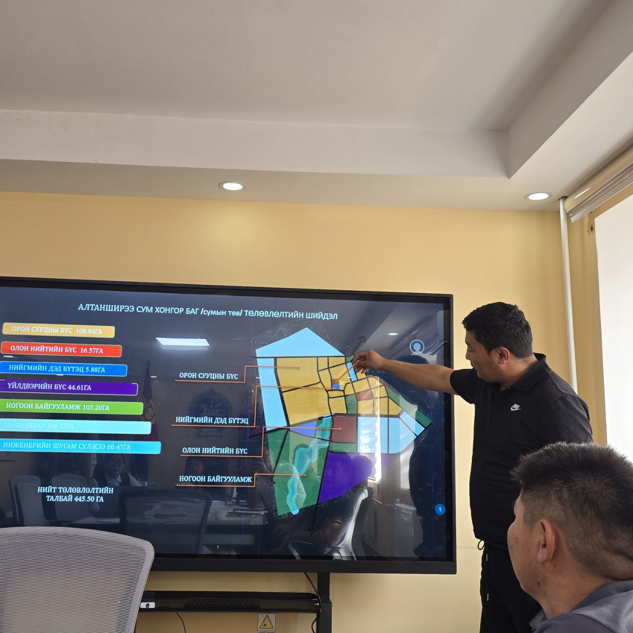 Дорноговь аймгийн Алтанширээ сумын хот хөгжлийн ерөнхий төлөвлөгөө боловсруулах ажлын явцын мэдээлэл, төлөвлөлтийн үндсэн шийдлийг гүйцэтгэгч "Циркул проект" ХХК ажлын хэсгийн гишүүдэд танилцуулан санал солилцон хамтран ажиллаж байна.