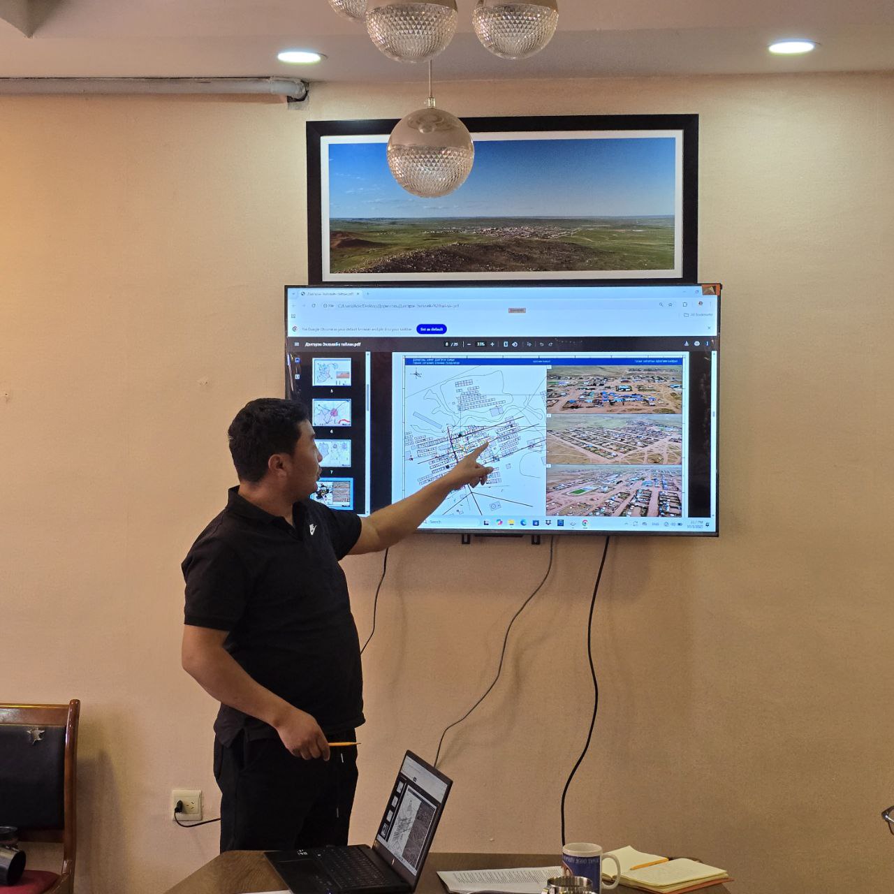 Дорноговь аймгийн Дэлгэрэх сумын төвийн хөгжлийн ерөнхий төлөвлөгөө боловсруулах ажлын явцын мэдээлэл, төлөвлөлтийн үндсэн шийдлийг гүйцэтгэгч "Циркул проект" ХХК ажлын хэсгийн гишүүдэд танилцуулан санал солилцон хамтран ажиллаж байна.