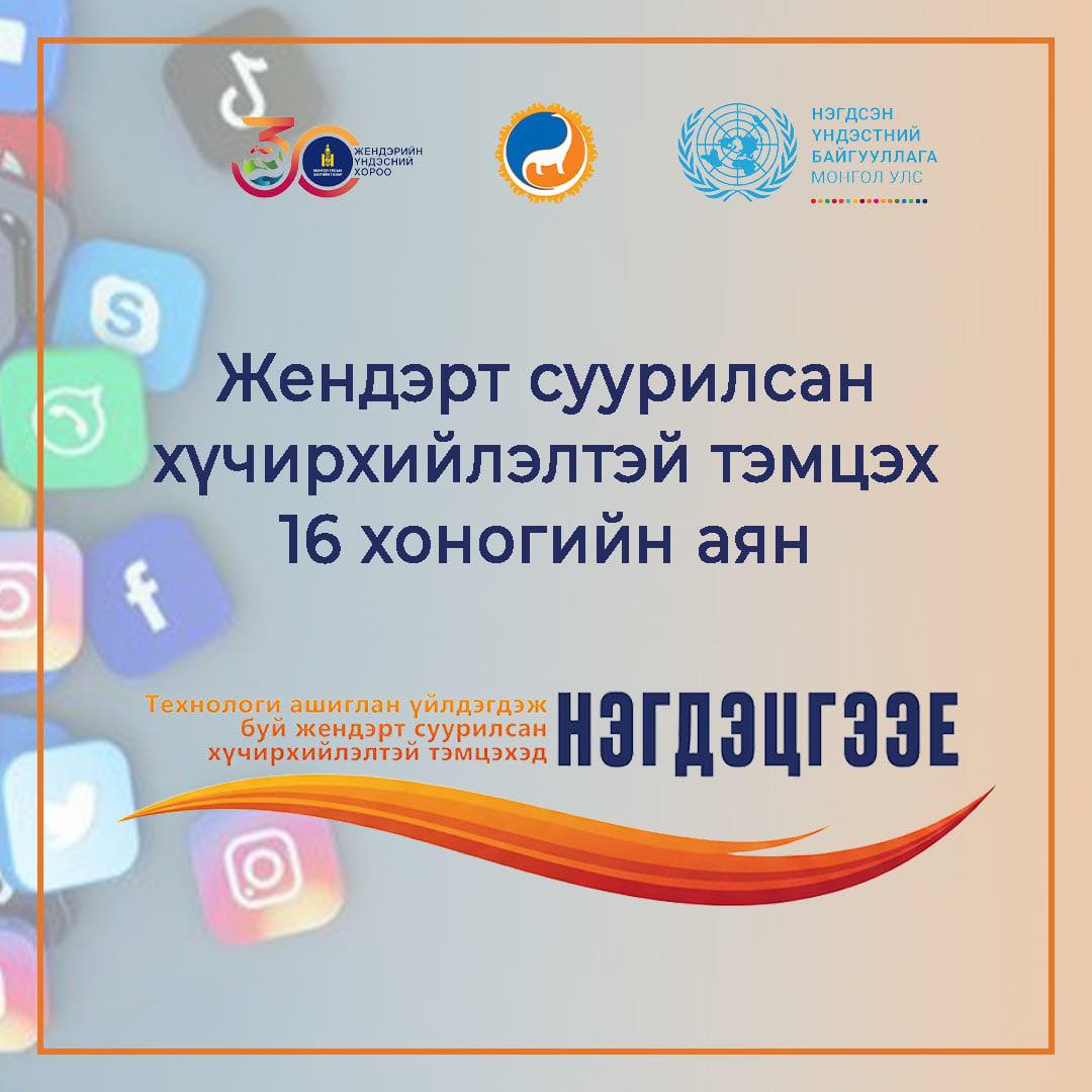 Энэ жил “ТЕХНОЛОГИ АШИГЛАН ҮЙЛДЭГДЭЖ БУЙ ЖЕНДЭРТ СУУРИЛСАН ХҮЧИРХИЙЛЭЛТЭЙ ТЭМЦЭХЭД НЭГДЬЕ” уриатайгаар өсвөр насныхан, залуучуудын цахим орчин дахь аюулгүй байдалд голлон анхаарч, технологийг аюулгүй, ёс зүйтэй ашиглахыг дэмжин, технологи ашиглан үйлдэгдэх хүчирхийлэлтэй тэмцэх, үйлдэгчдэд хариуцлага тооцож, хохирогчдыг хамгаалах хууль эрх зүйн зохицуулалтыг бий болгох зорилготой юм.
