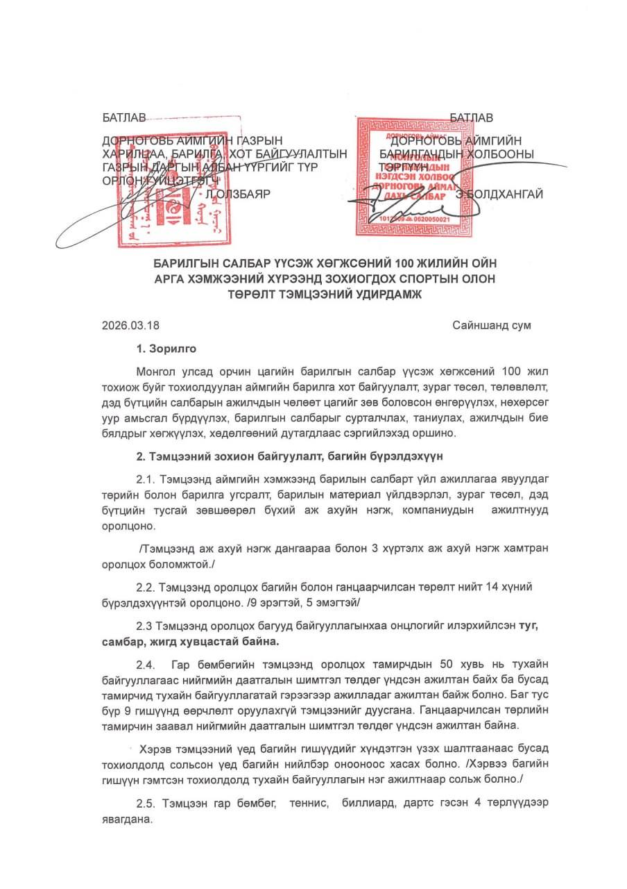 Барилгын салбар үүсэж хөгжсөний 100 жил, Дорноговь аймагт барилгын салбар үүсэж хөгжсөний 64 жилийн ойн хүрээнд салбарын ажилчдын дунд зохион байгуулагдах спортын тэмцээнд оролцохыг уриалж байна.