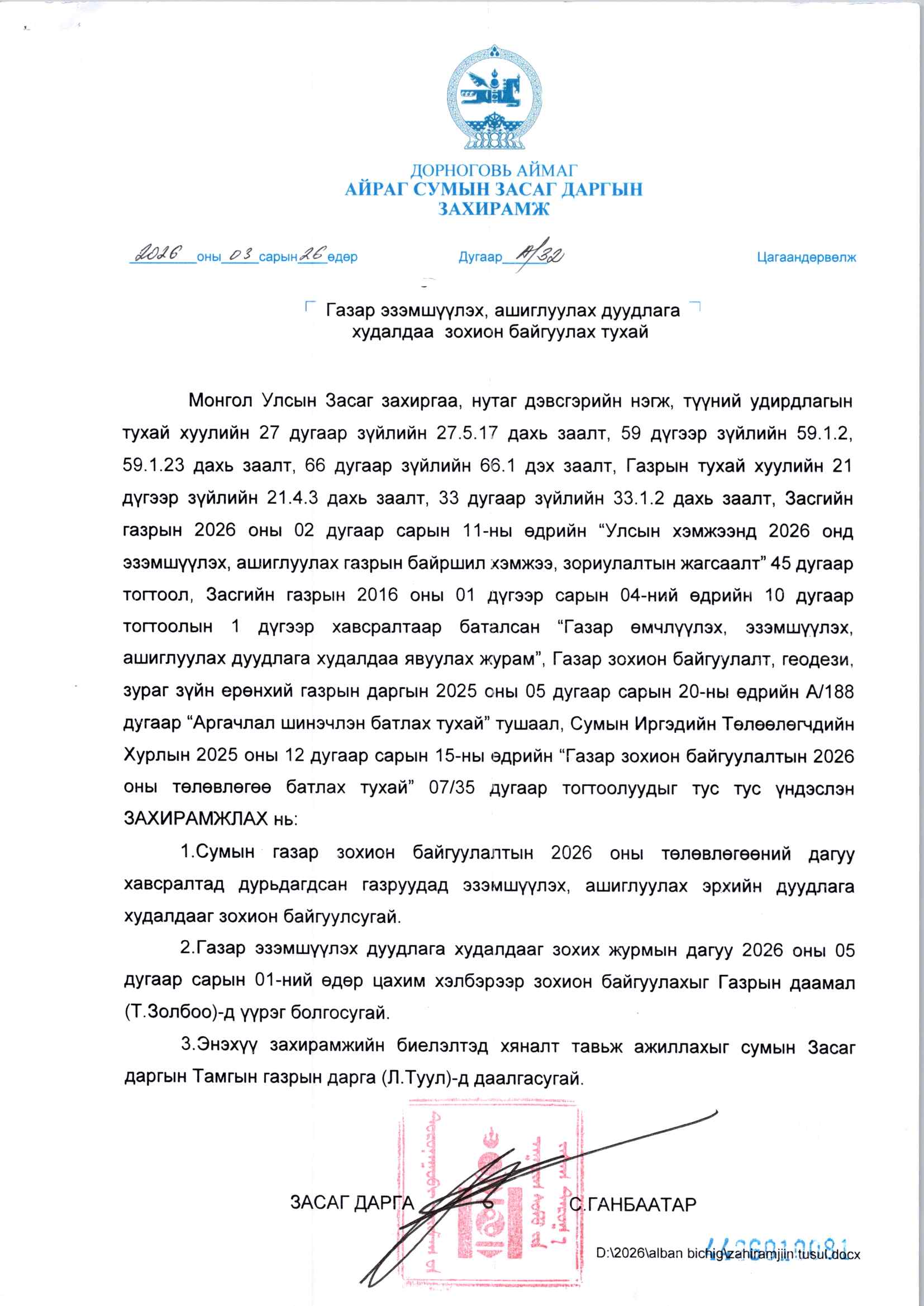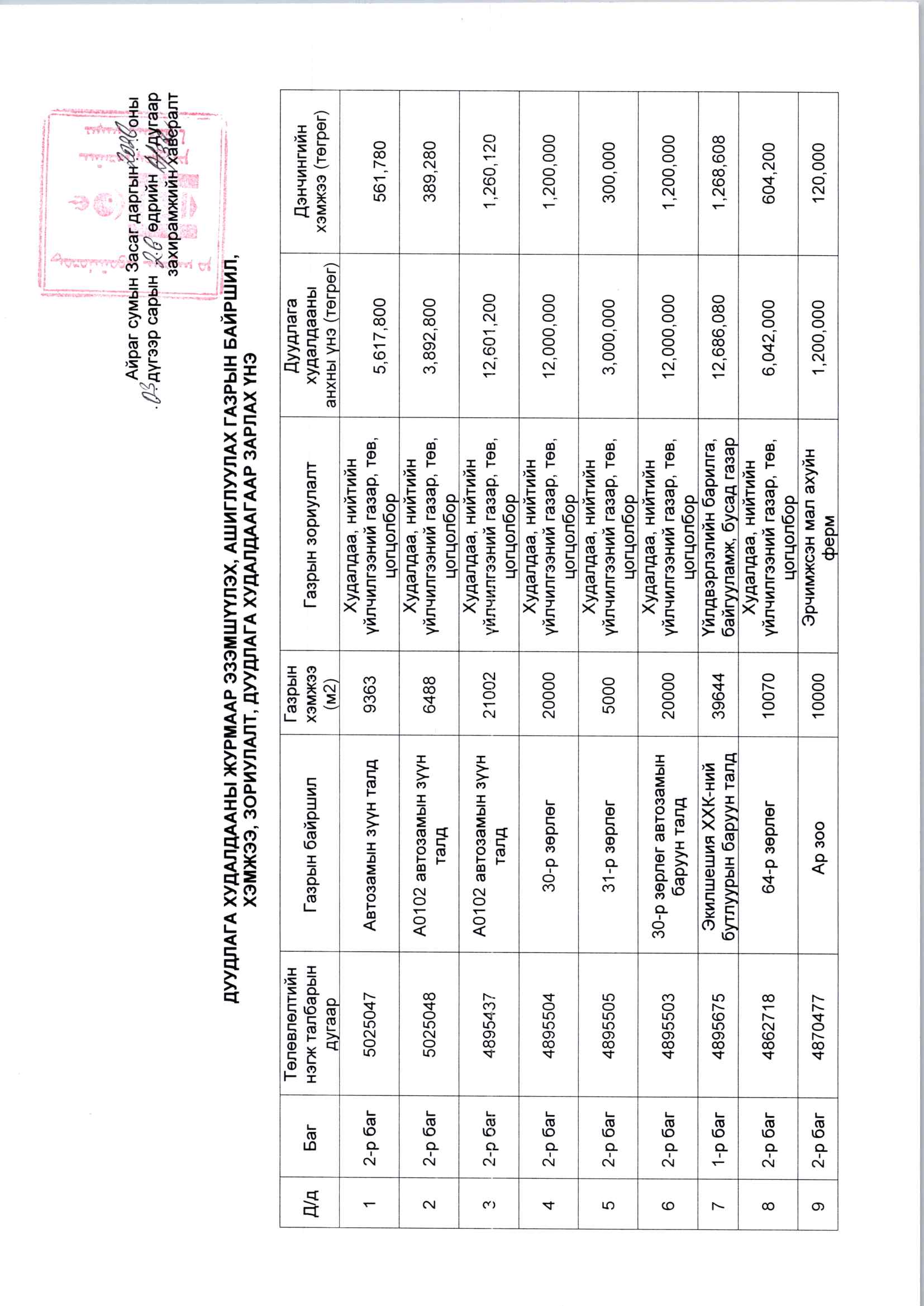 ГАЗРЫН ДУУДЛАГА ХУДАЛДААНЫ ЗАР-АЙРАГ СУМ