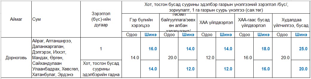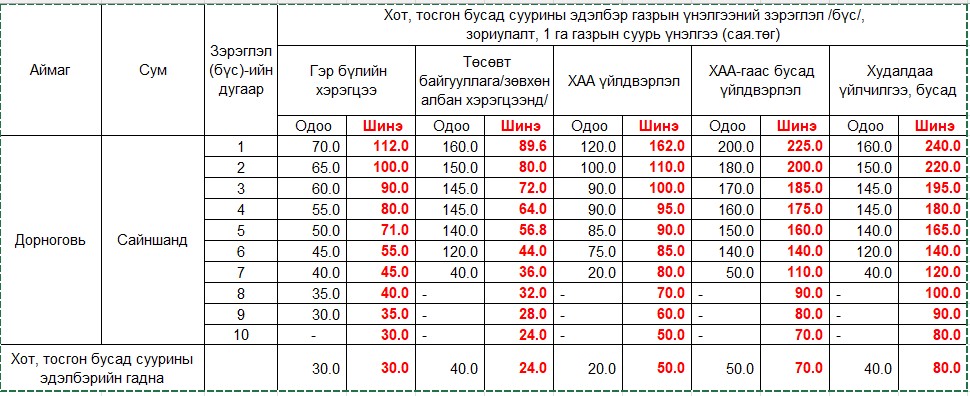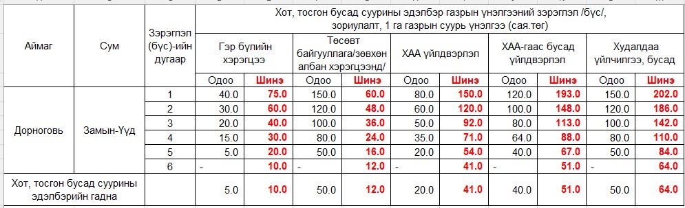 ГАЗРЫН ҮНЭЛГЭЭНИЙ ТОЙРОГ, ЗЭРЭГЛЭЛ /БҮС/, СУУРЬ ҮНЭЛГЭЭГ ШИНЭЧЛЭН ТОГТООХ ТУХАЙ ТОГТООЛЫН ТӨСӨЛД САНАЛ АВЧ БАЙНА.