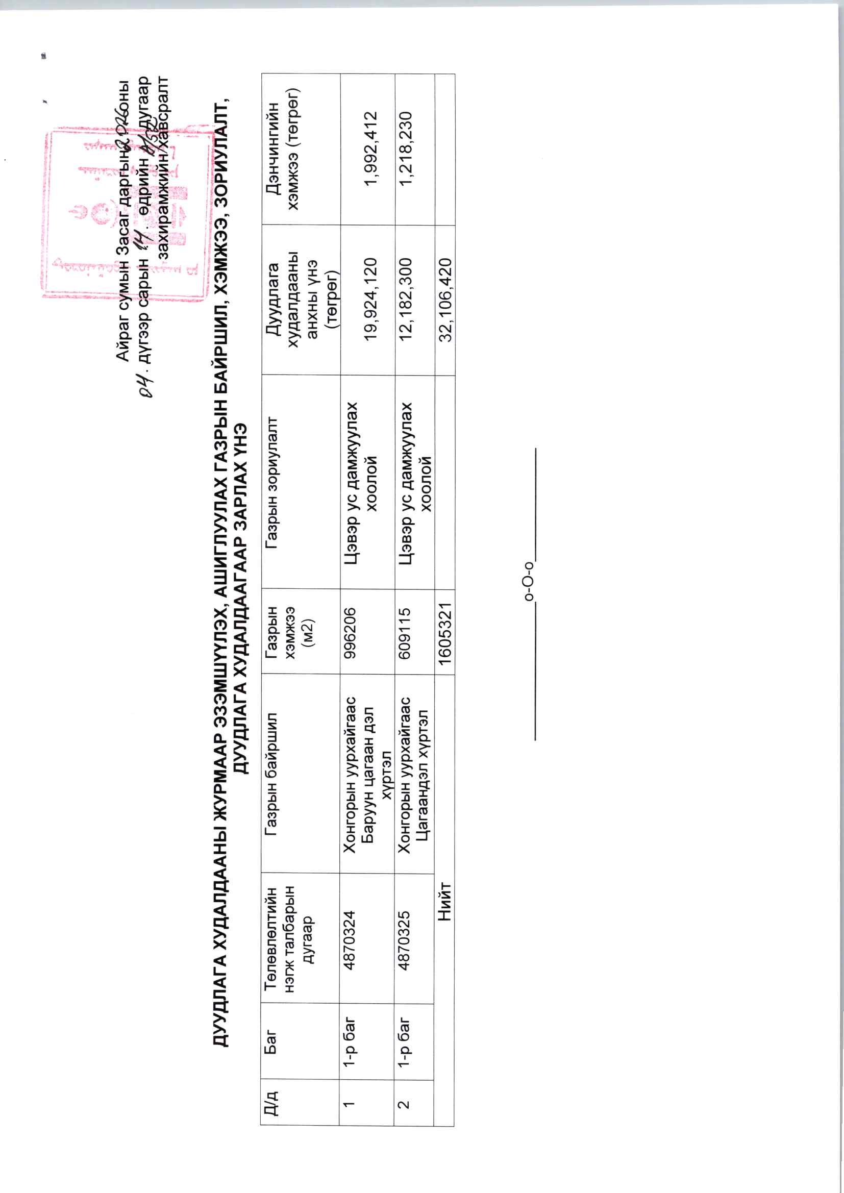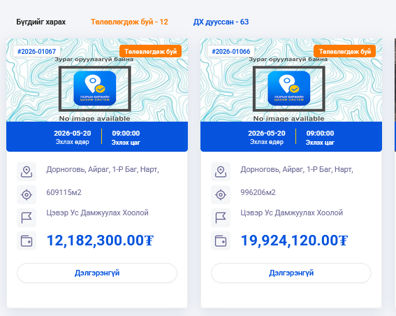 Газрын байршил болон бусад дэлгэрэнгүй мэдээллийг газрын биржийн цахим систем https://mle.mn -ээр орж авах, 70523988 утсаар лавлана уу.