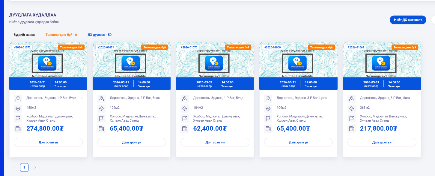 6. Иргэн, ААН-12500 төгрөгийг цахим төлбөрийн системийн www.itax.mta.mn хаягаар нэвтэрч төлбөрийн даалгавар үүсгэж тушаана. Дуудлага худалдаа явуулах газрын байршил, хил хязгаарыг харуулсан схем зураг болон бусад дэлгэрэнгүй мэдээллийг 70523988 утсаар лавлана уу.