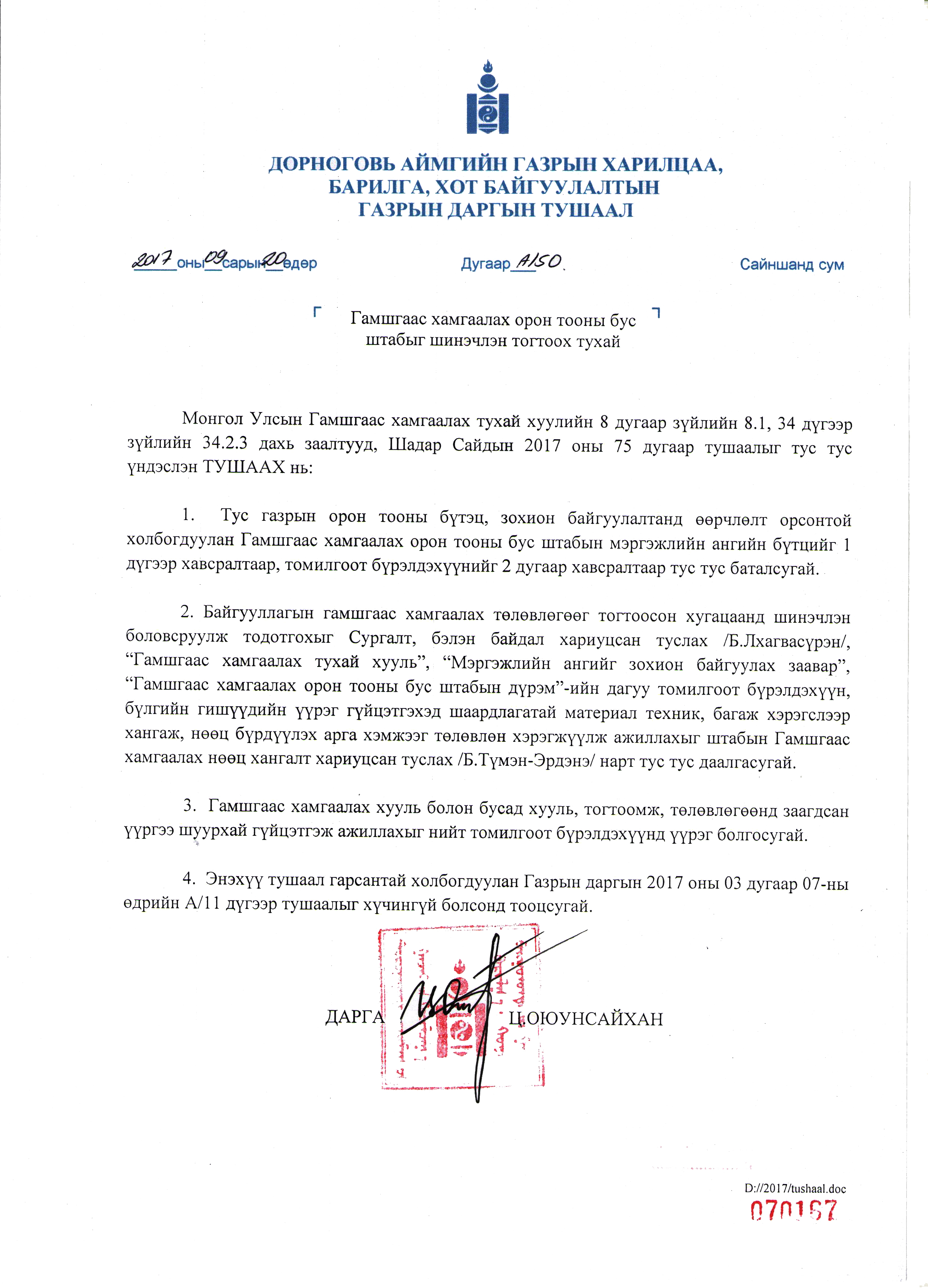 ГАЗРЫН ДАРГЫН ТУШААЛ