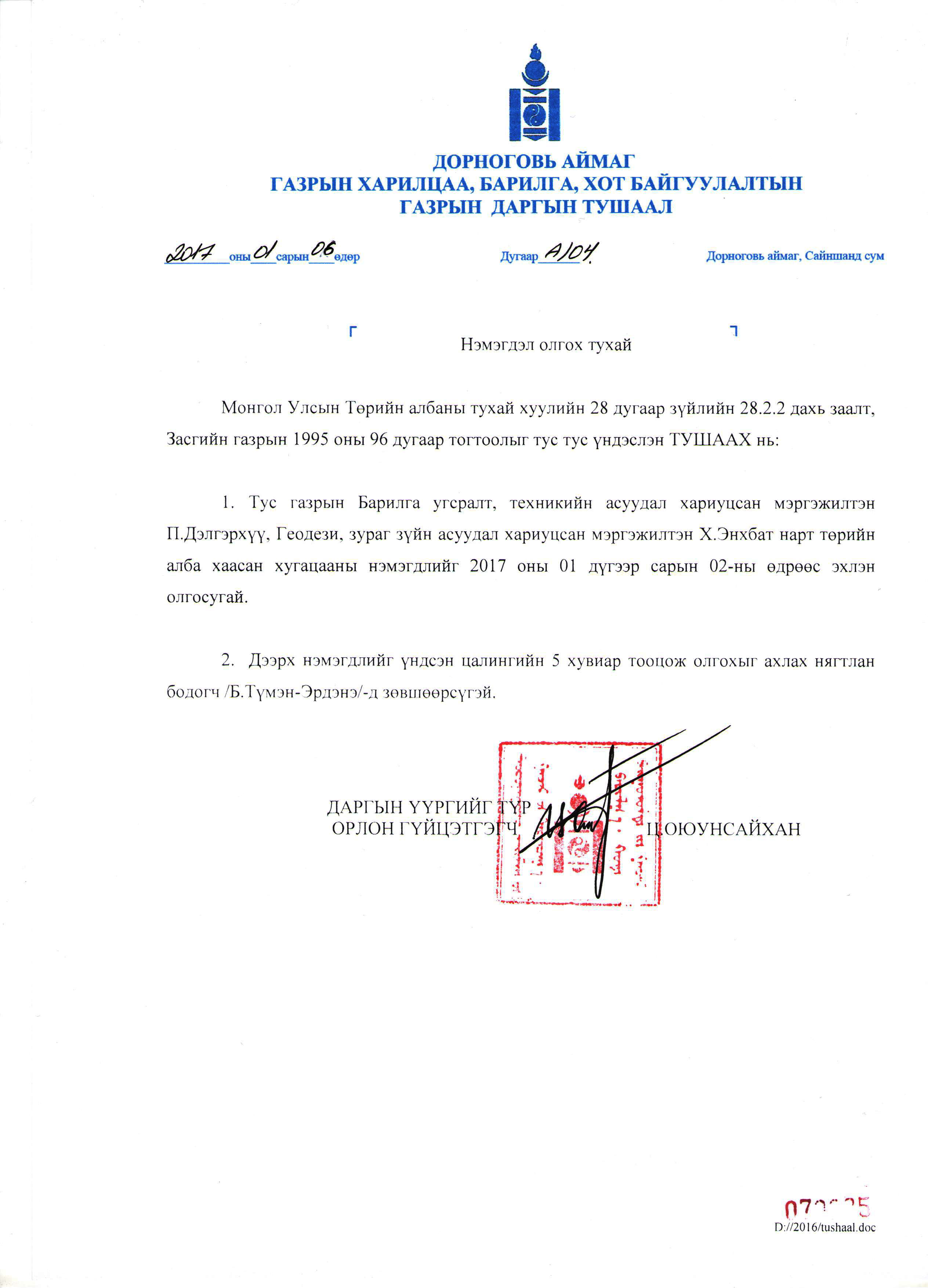 ГАЗРЫН ДАРГЫН ТУШААЛ