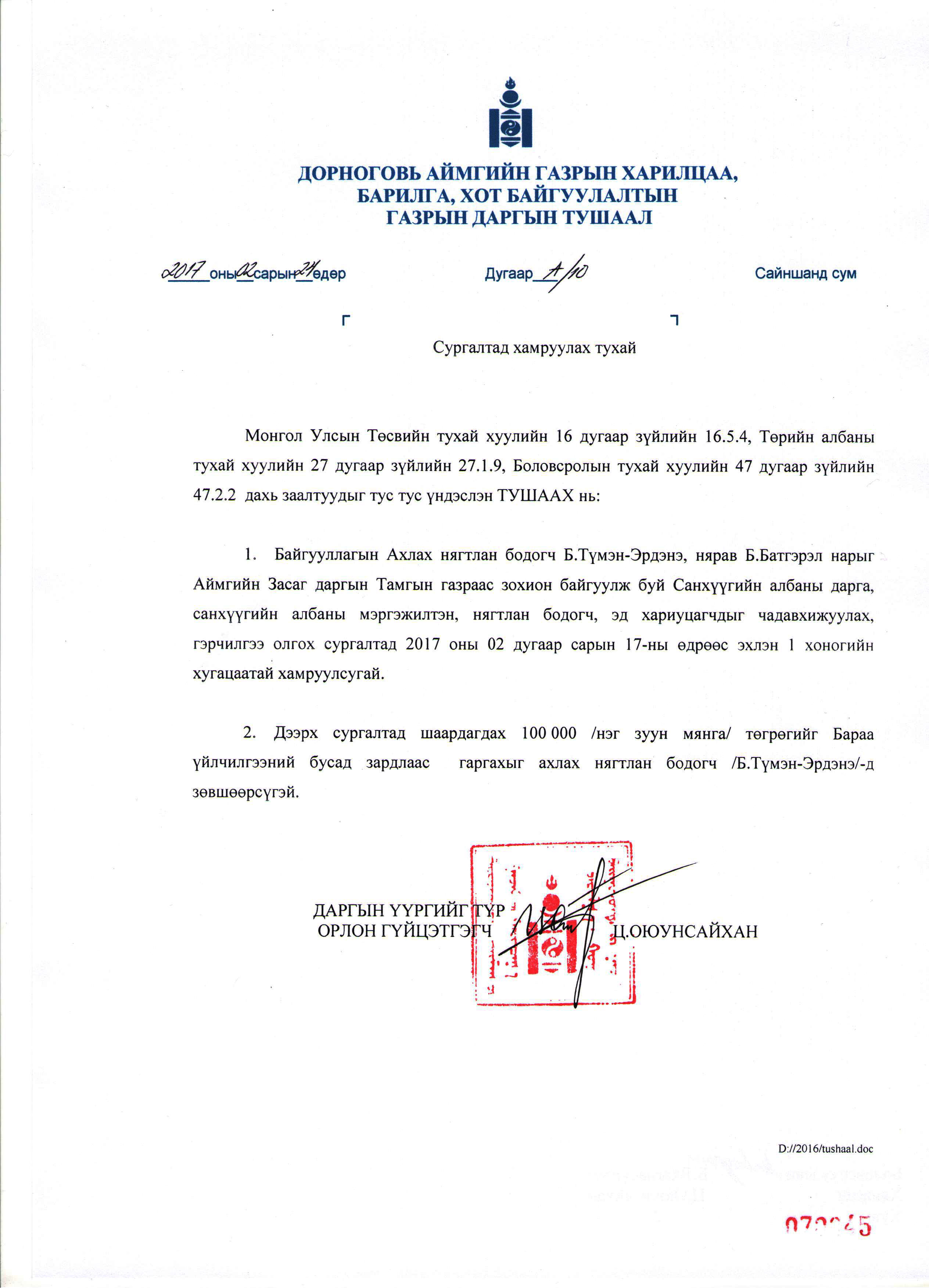 ГАЗРЫН ДАРГЫН ТУШААЛ