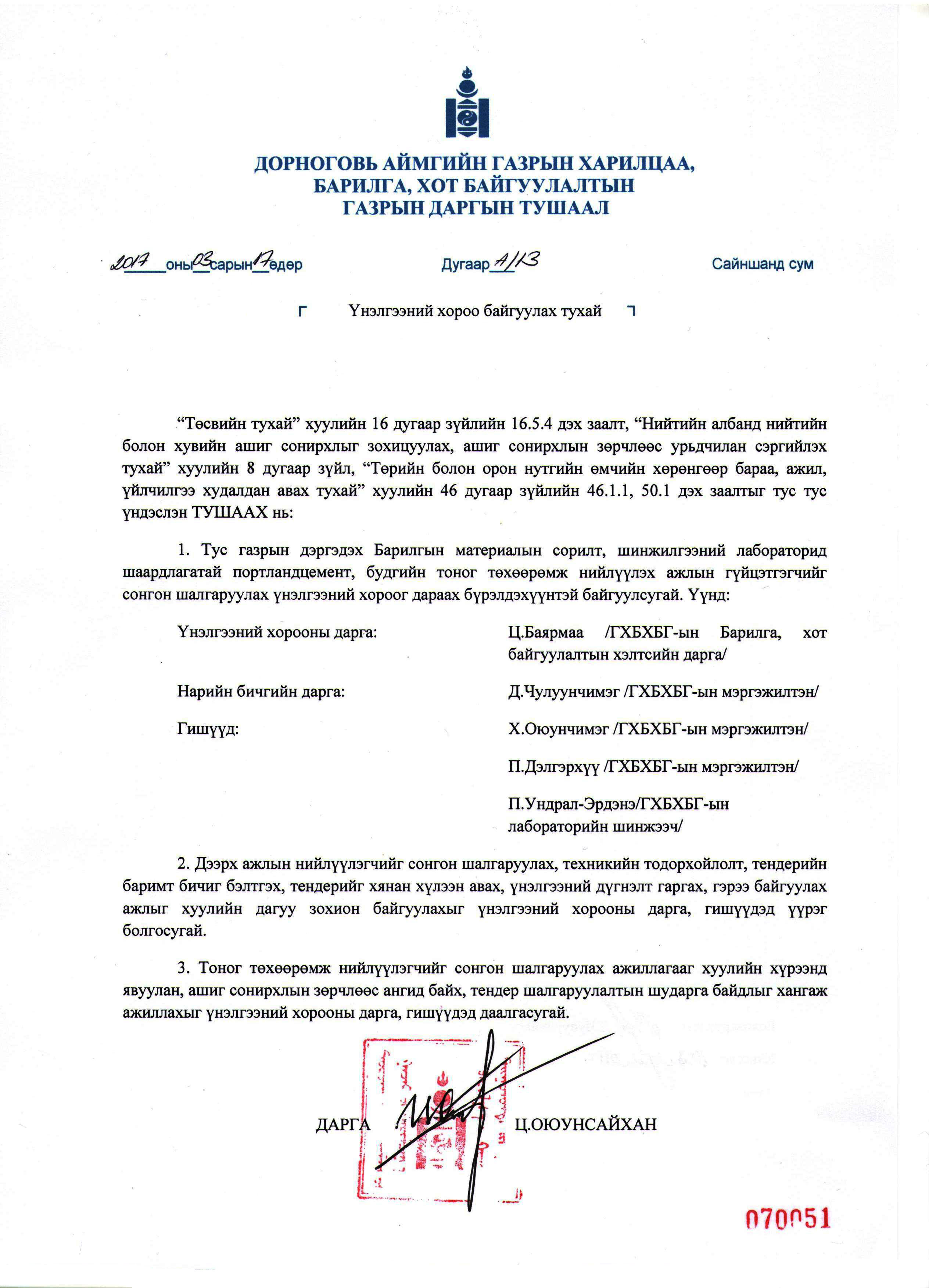 АРХИТЕХТУР ТӨЛӨВЛӨЛТИЙН ДААЛГАВАР, БАРИЛГЫН АЖЛЫН ЗӨВШӨӨРӨЛ АВАХ