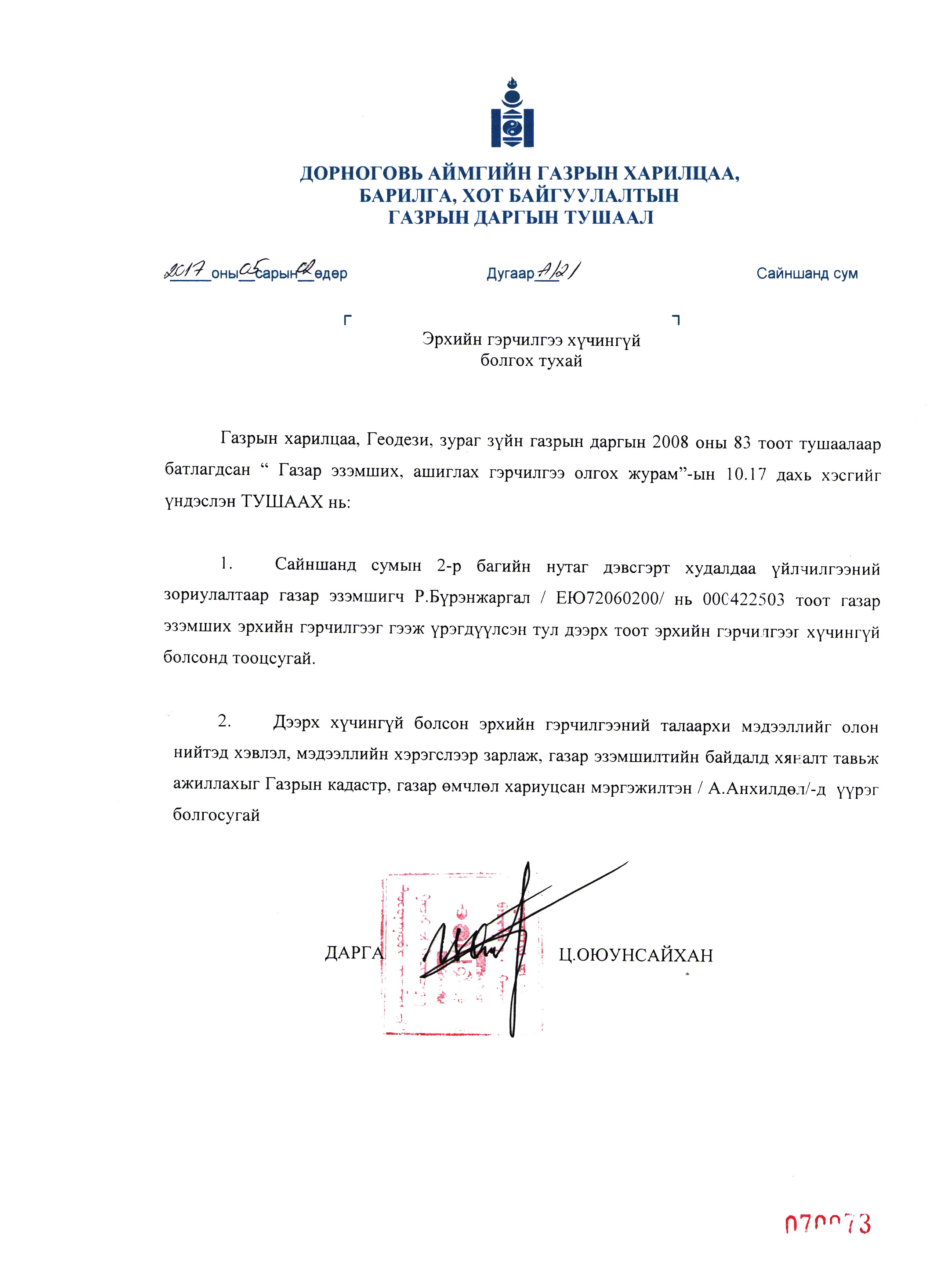БАЙГУУЛЛАГЫН ЭЗЭМШИЖ БУЙ ГАЗРЫН МЭДЭЭЛЭЛ