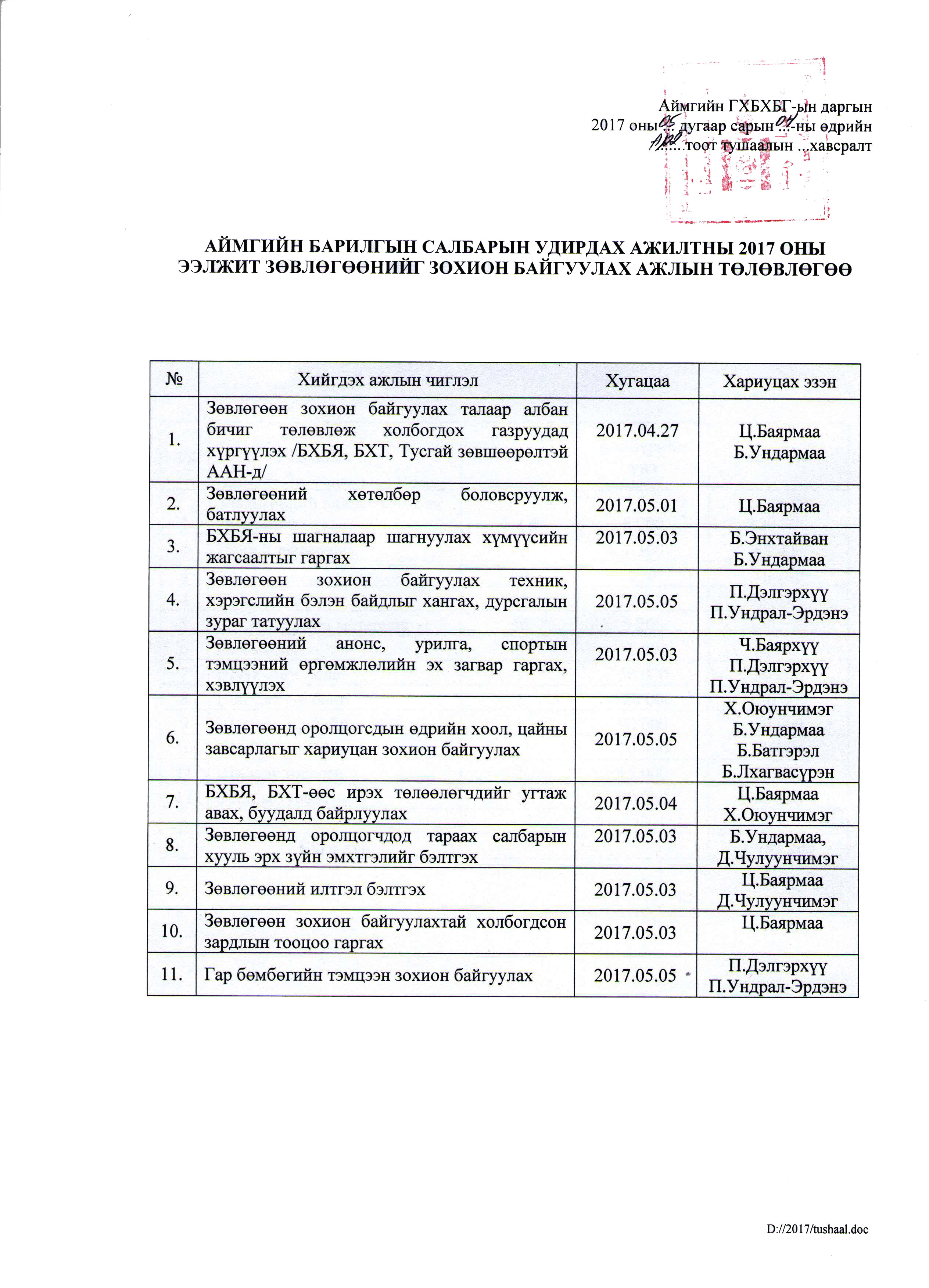 АЙМГИЙН ГАЗАР ЗОХИОН БАЙГУУЛАЛТЫН ТӨЛӨВЛӨГӨӨ