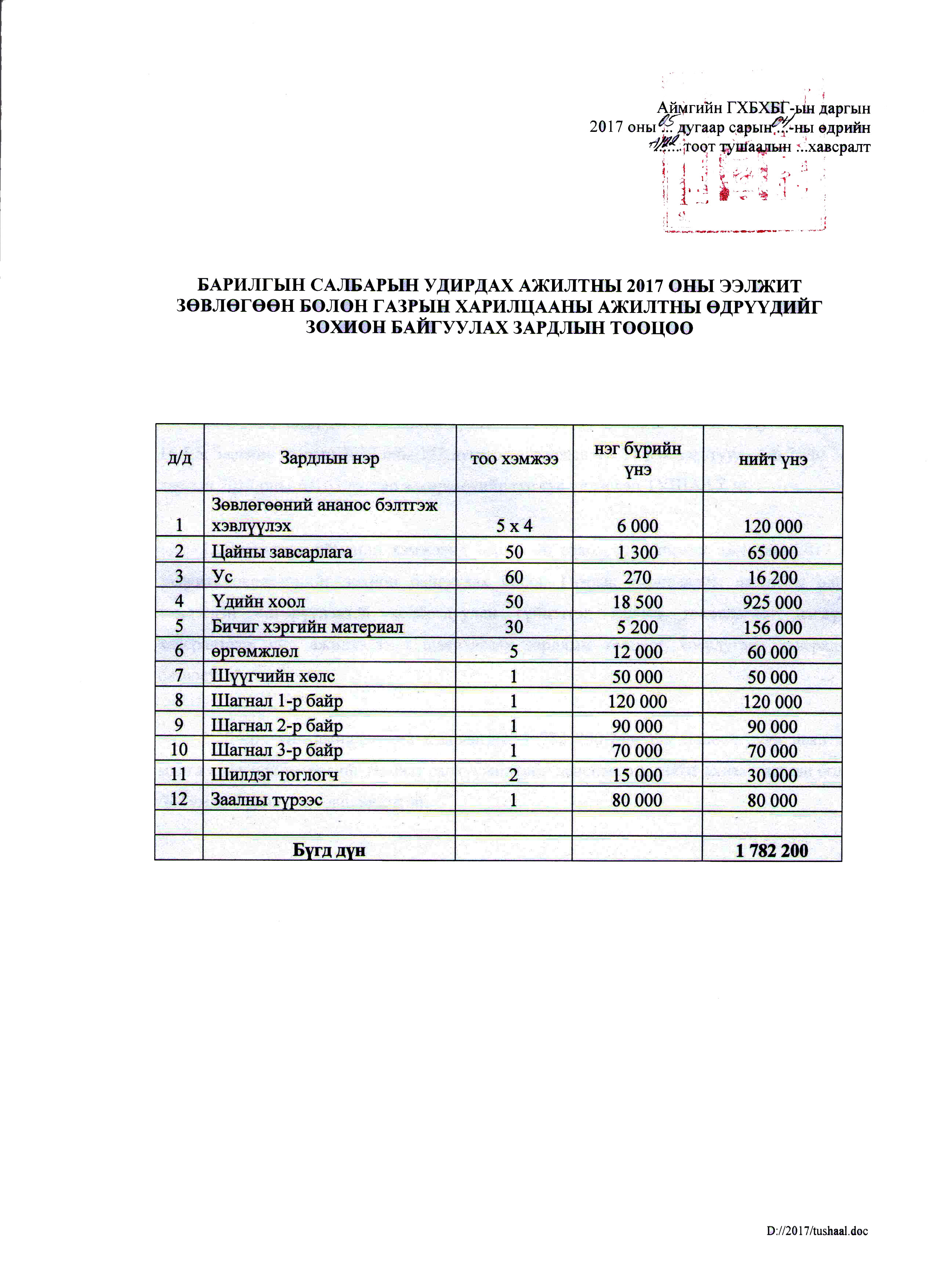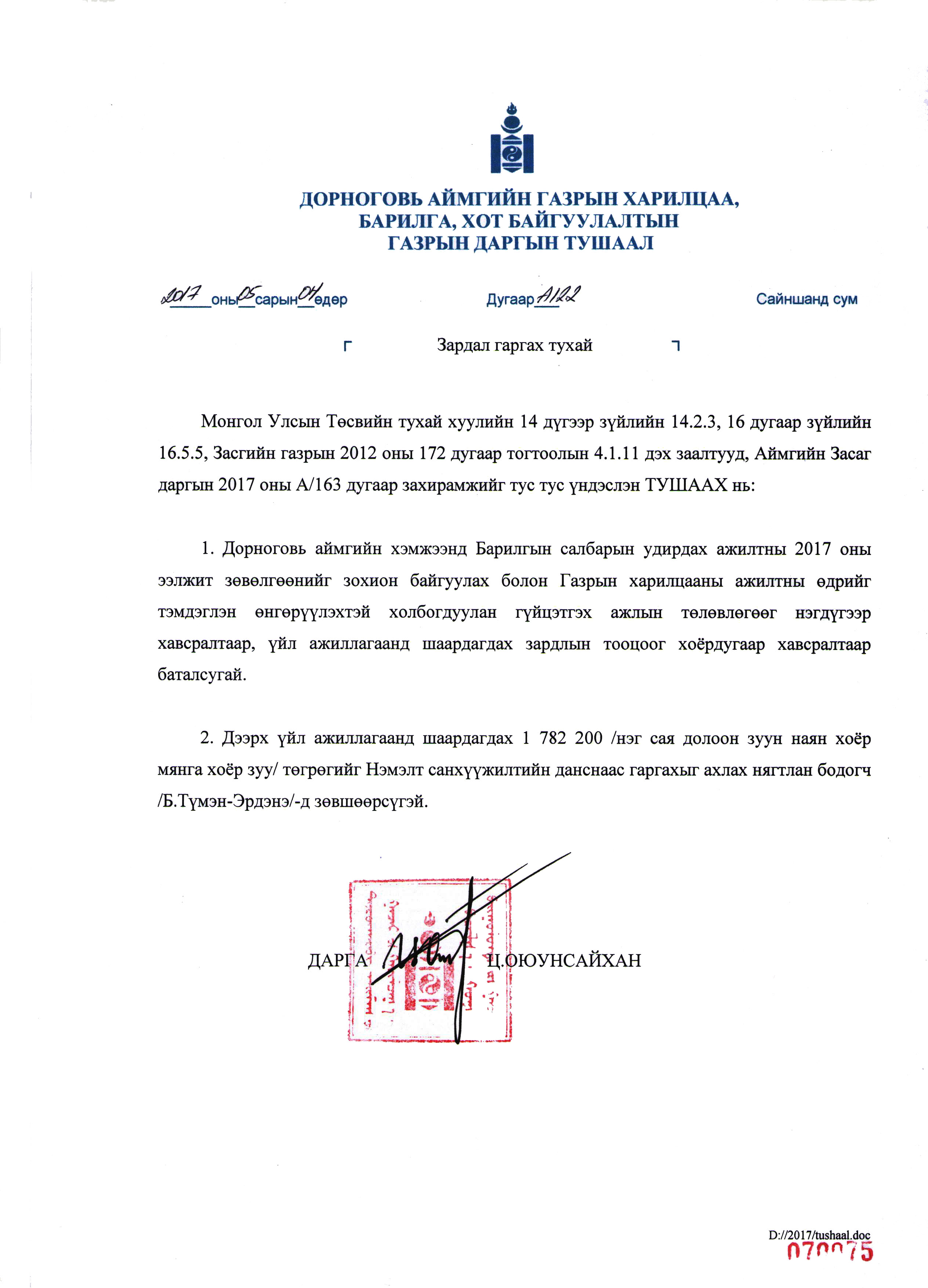 ГАЗРЫН ДАРГЫН ТУШААЛ