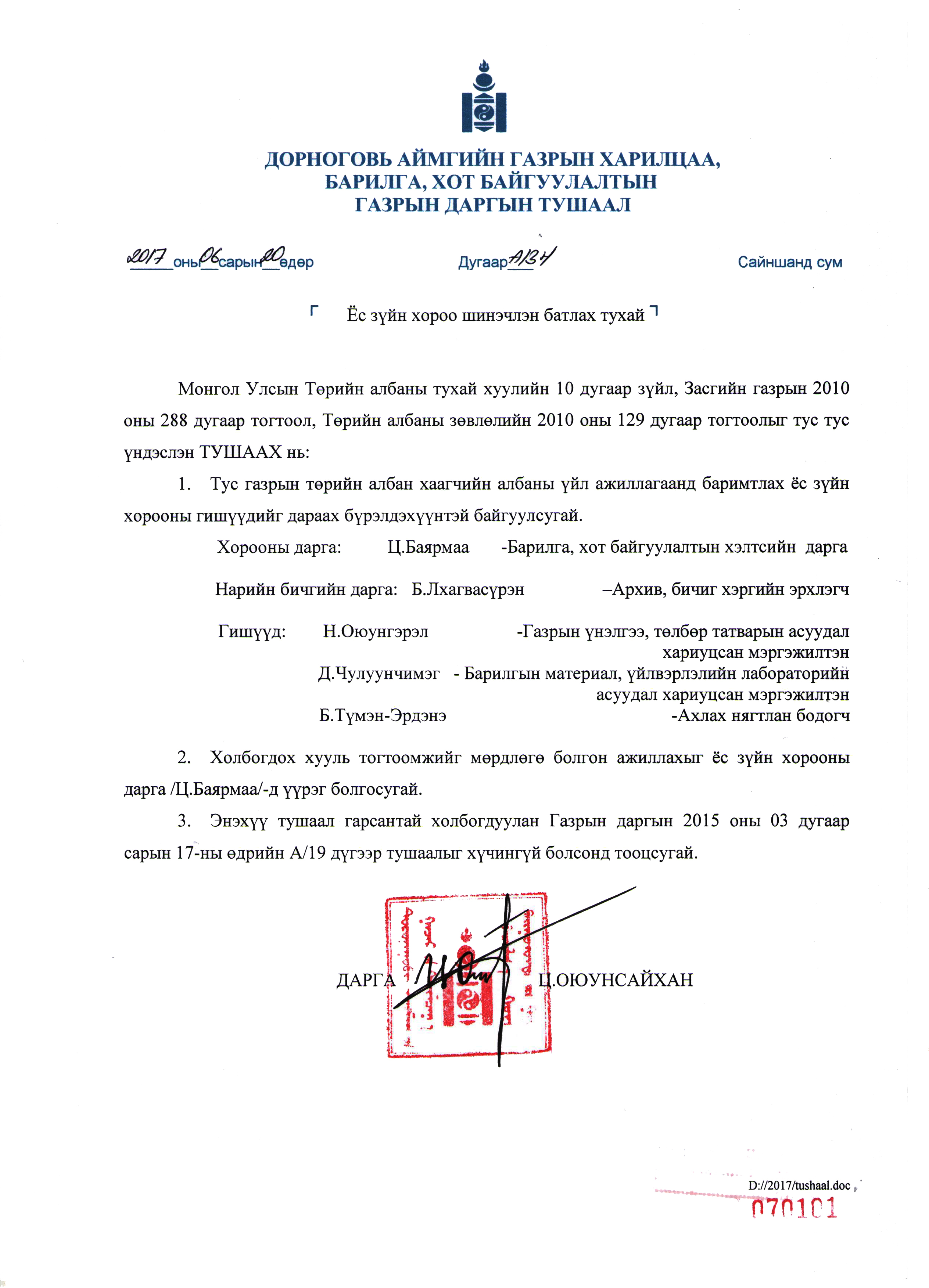 ГАЗРЫН ДАРГЫН ТУШААЛ