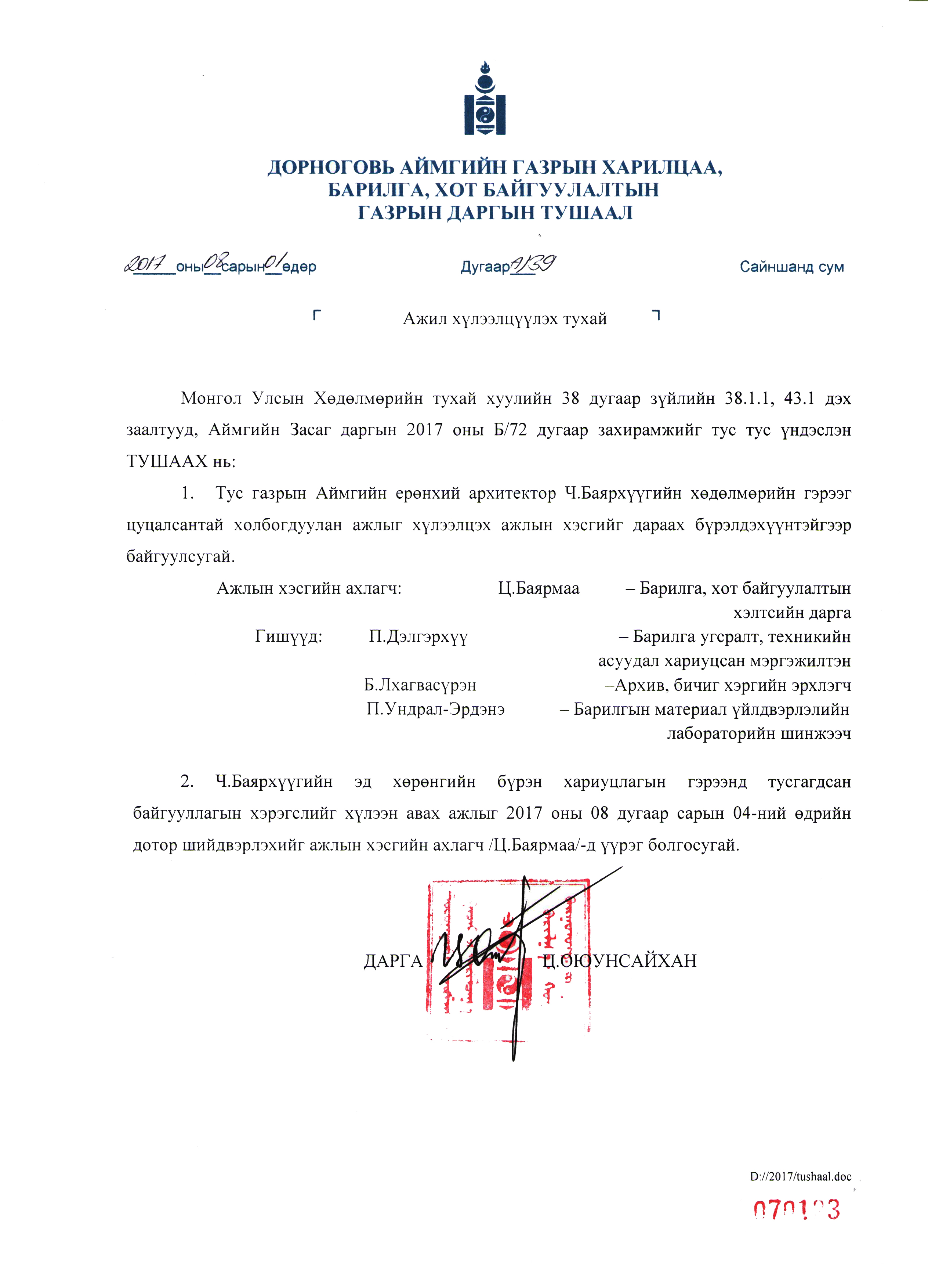 ГАЗРЫН ДАРГЫН ТУШААЛ