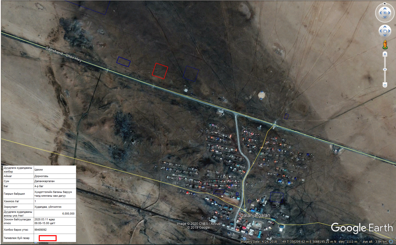 ДАЛАНЖАРГАЛАН СУМАНД ГАЗРЫН ЦАХИМ ДУУДЛАГА ХУДАЛДАА ЗОХИОН БАЙГУУЛАГДАНА.