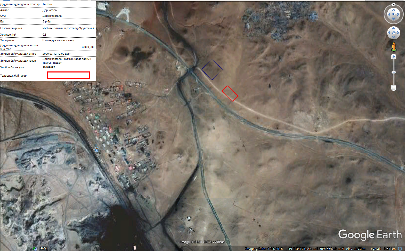 Дуудлага худалдаа явуулах газрын байршил, хил хязгаарыг харуулсан схем зураг болон бусад дэлгэрэнгүй мэдээллийг www.dornogovi.gazar.gov.mn, www.mle.mn гэсэн сайт, 99489092 утсаар болон Даланжаргалан сумын ЗДТГазар болон аймгийн ГХБХБГазраас ирж лавлана уу.