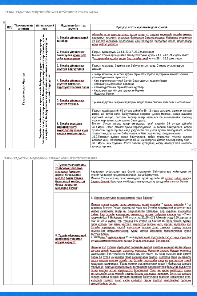 ГАЗРЫН КАДАСТРЫН МЭДЭЭЛЛИЙН САНГААС ҮЙЛЧИЛГЭЭ ҮЗҮҮЛЭХ ЗААВАР