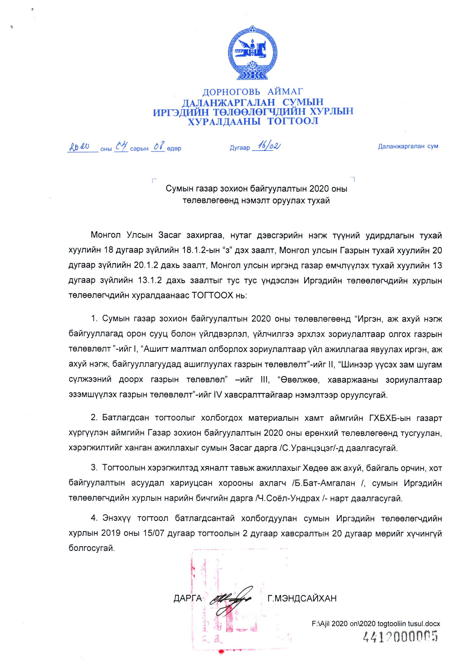 Даланжаргалан сумын газар зохион байгуулалтын төлөвлөгөө